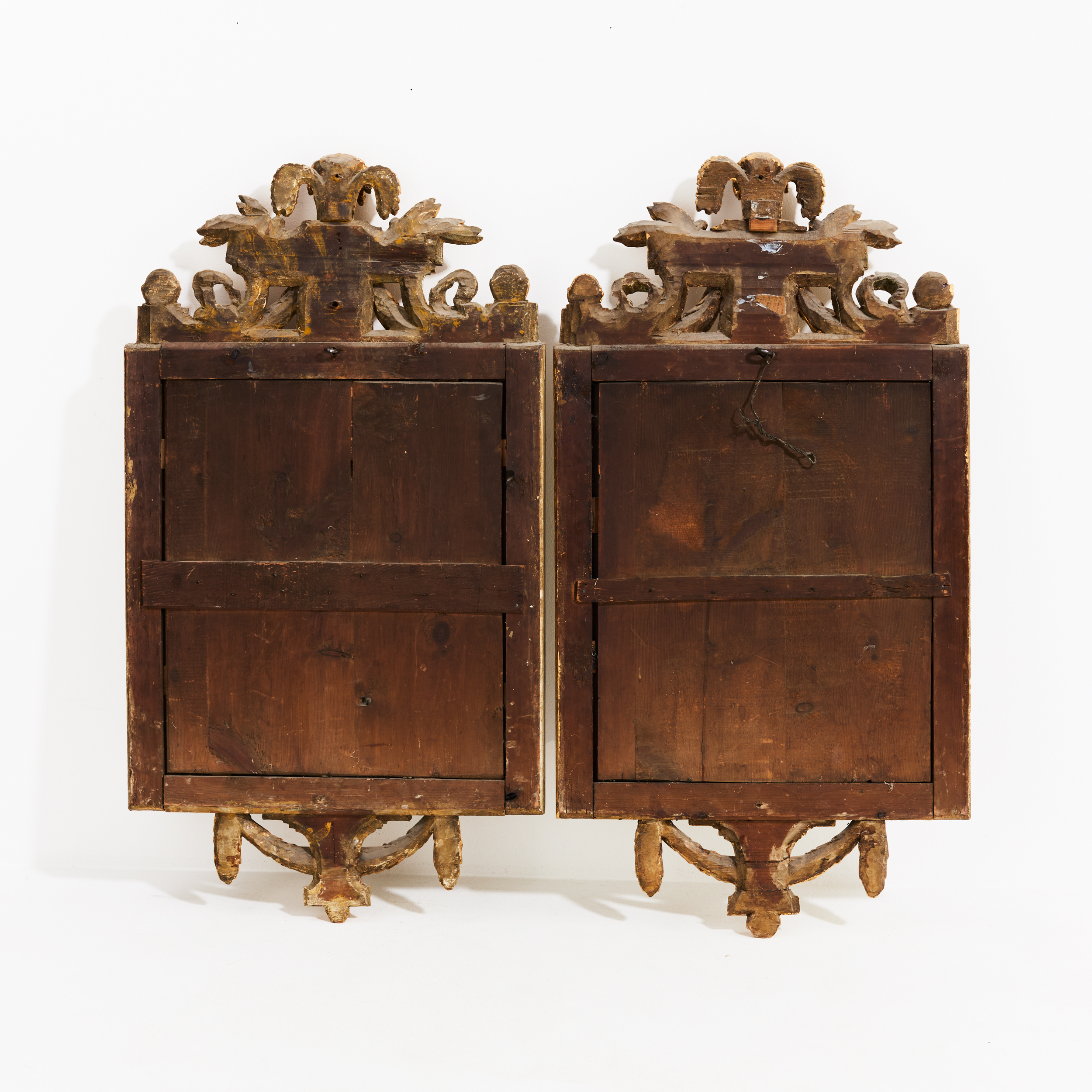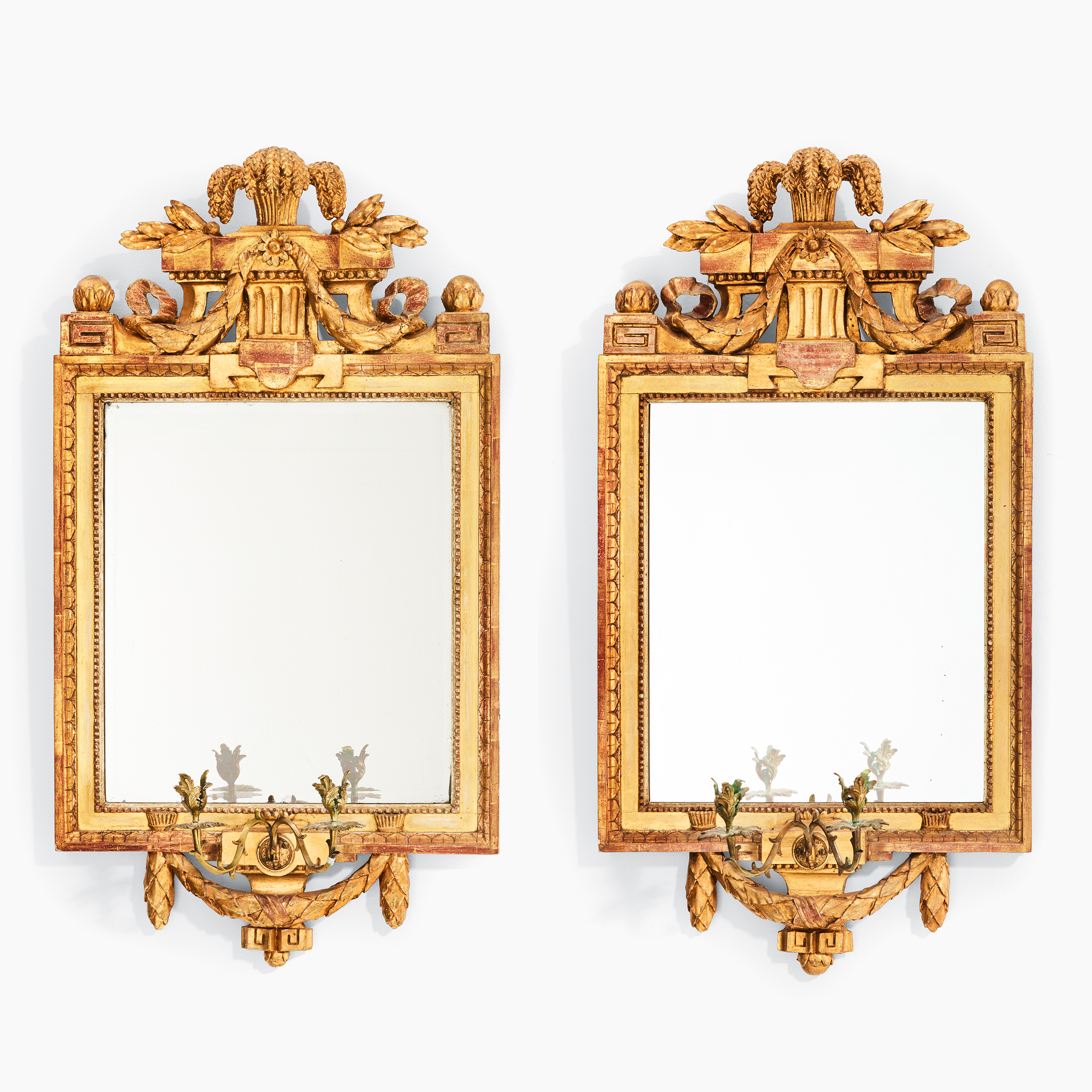 Carl Gustav Fyrwald. För två ljus vardera. H103, B56,5cm. Ej stämplade. Tillverkade ca 1780.