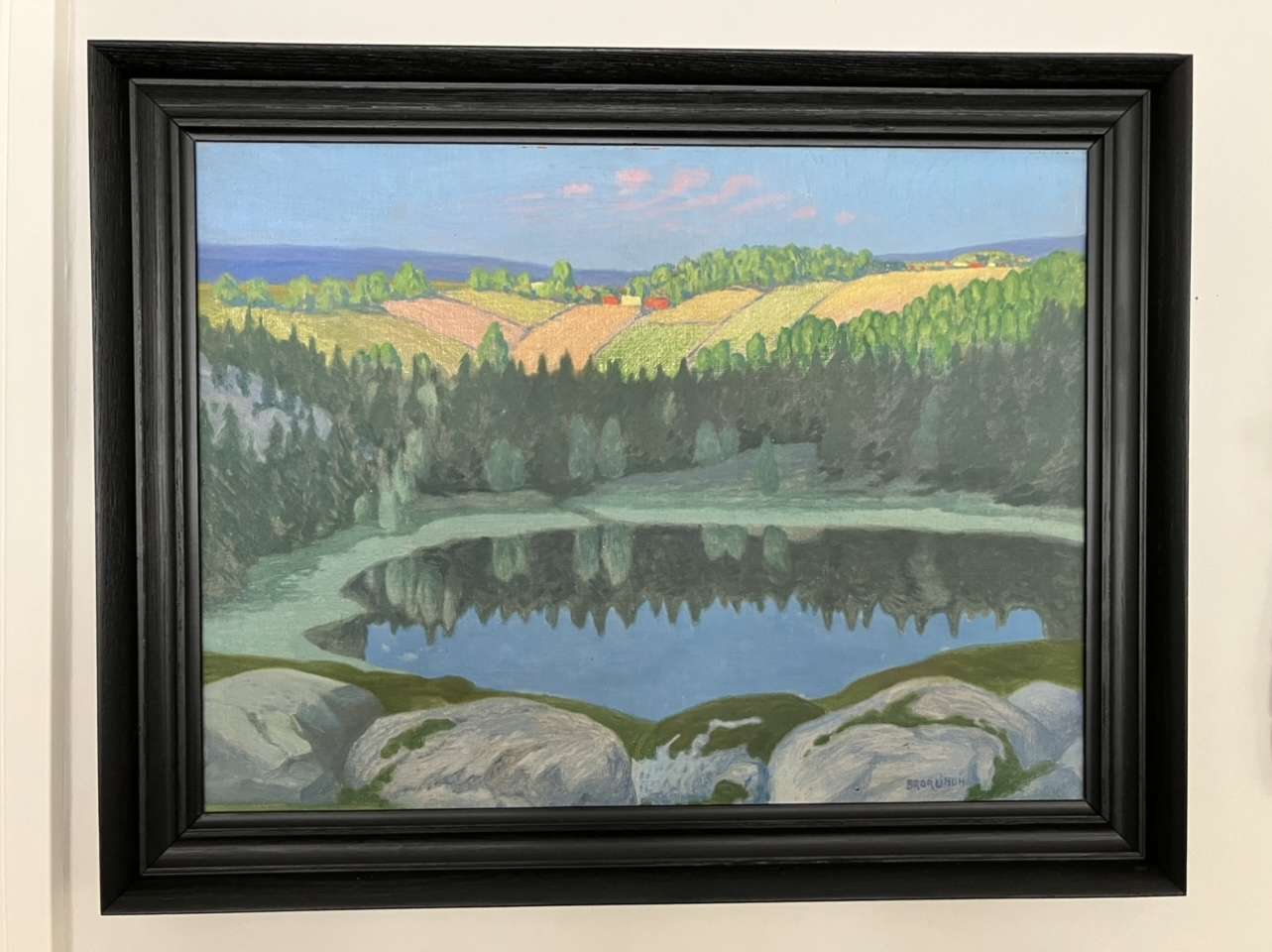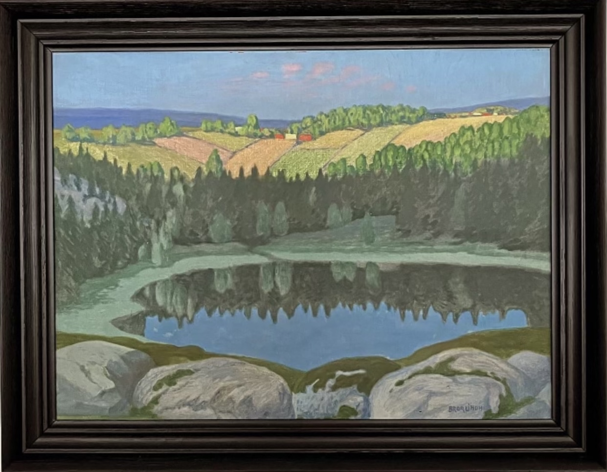 15,000 krTitel Klara i Norra Finnskoga 1958. Bildmått 54*45, inklusive ram 68*59. Olja på pannå