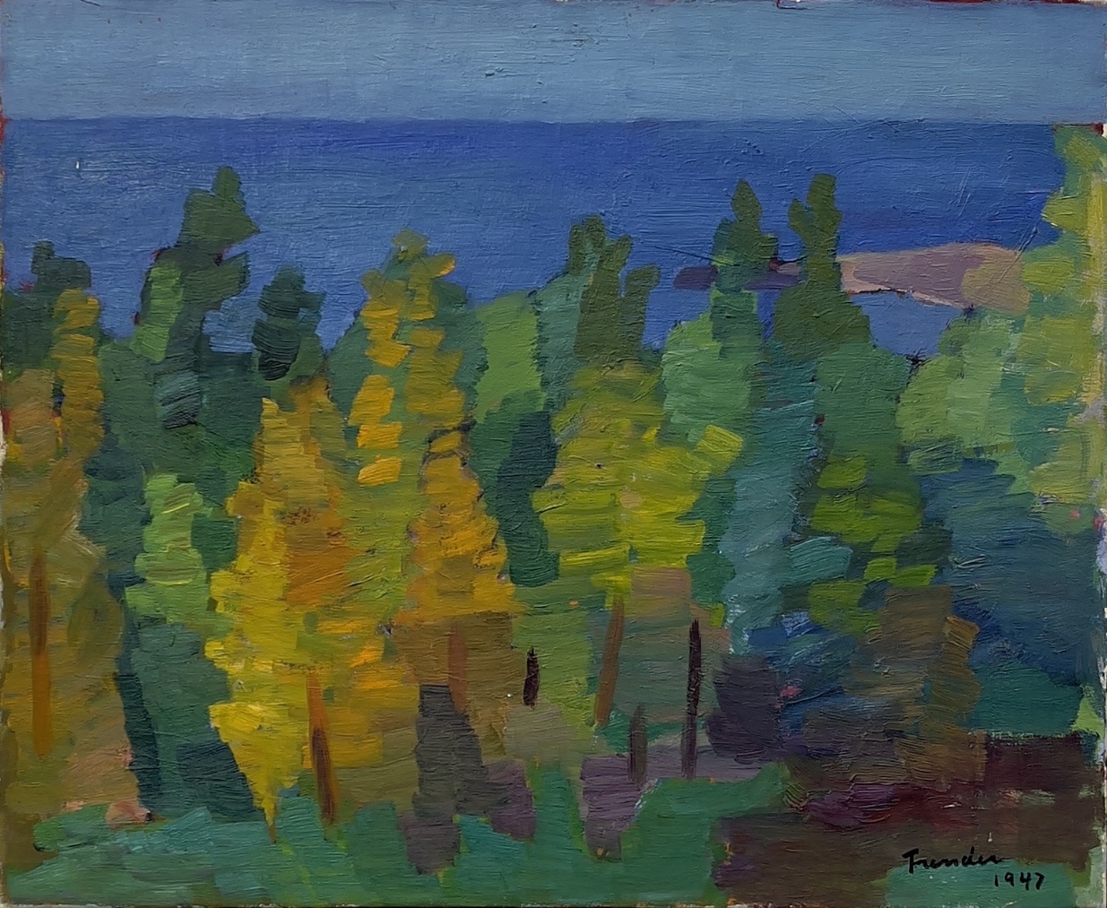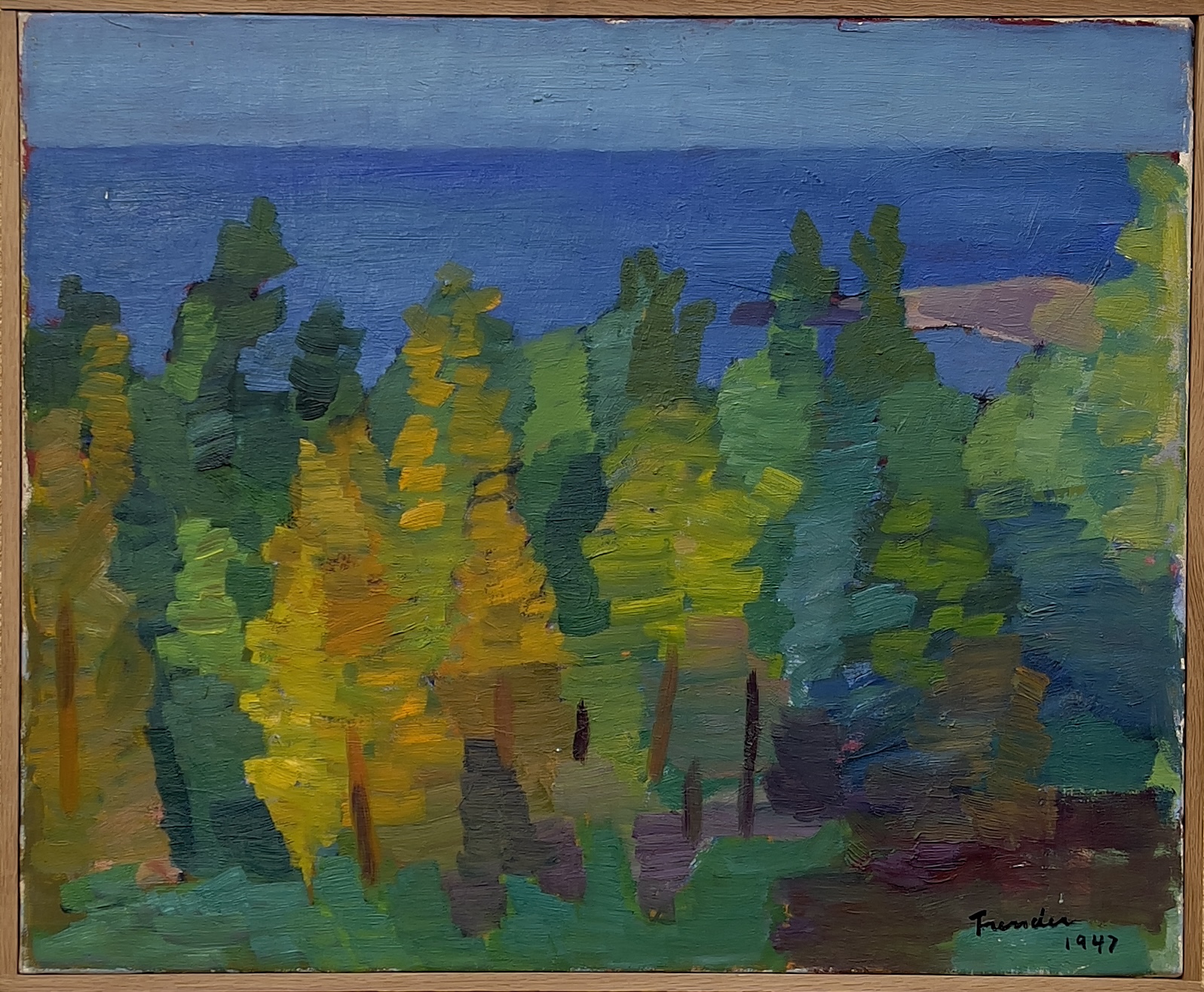 12,000 krTitel Vår på Hadeland. Bildmått 59*49, inklusive ram 74*64. Olja på pannå