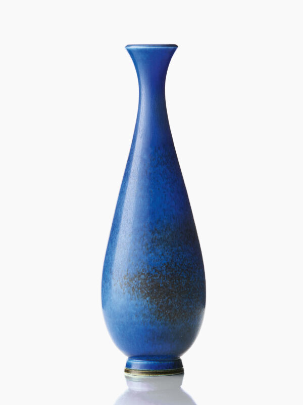 25,000 krBerndt Friberg (1899‑1981). Vas. Gustavsbergs studio 1960. Signerad med studiohanden och Friberg samt årsbokstav b. Stengods med harpälsglasyr i blå toner. H 28 cm